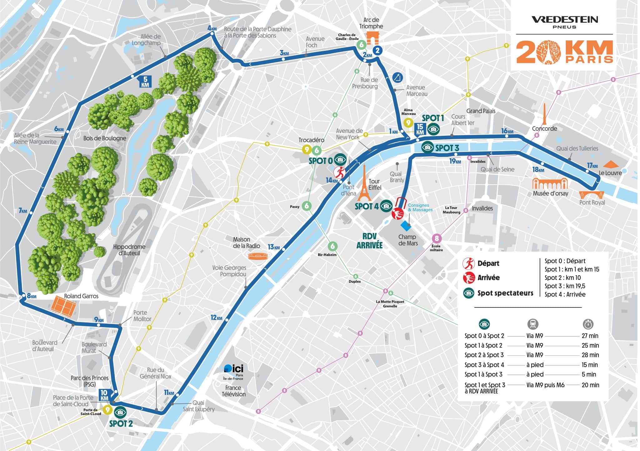 Pour encourager vos proches tout au long du parcours, découvrez le plan supporters des Vredestein 20km de Paris 2025 : les meilleurs points de rendez-vous et les accès pratiques pour profiter pleinement de cette 47ème édition !