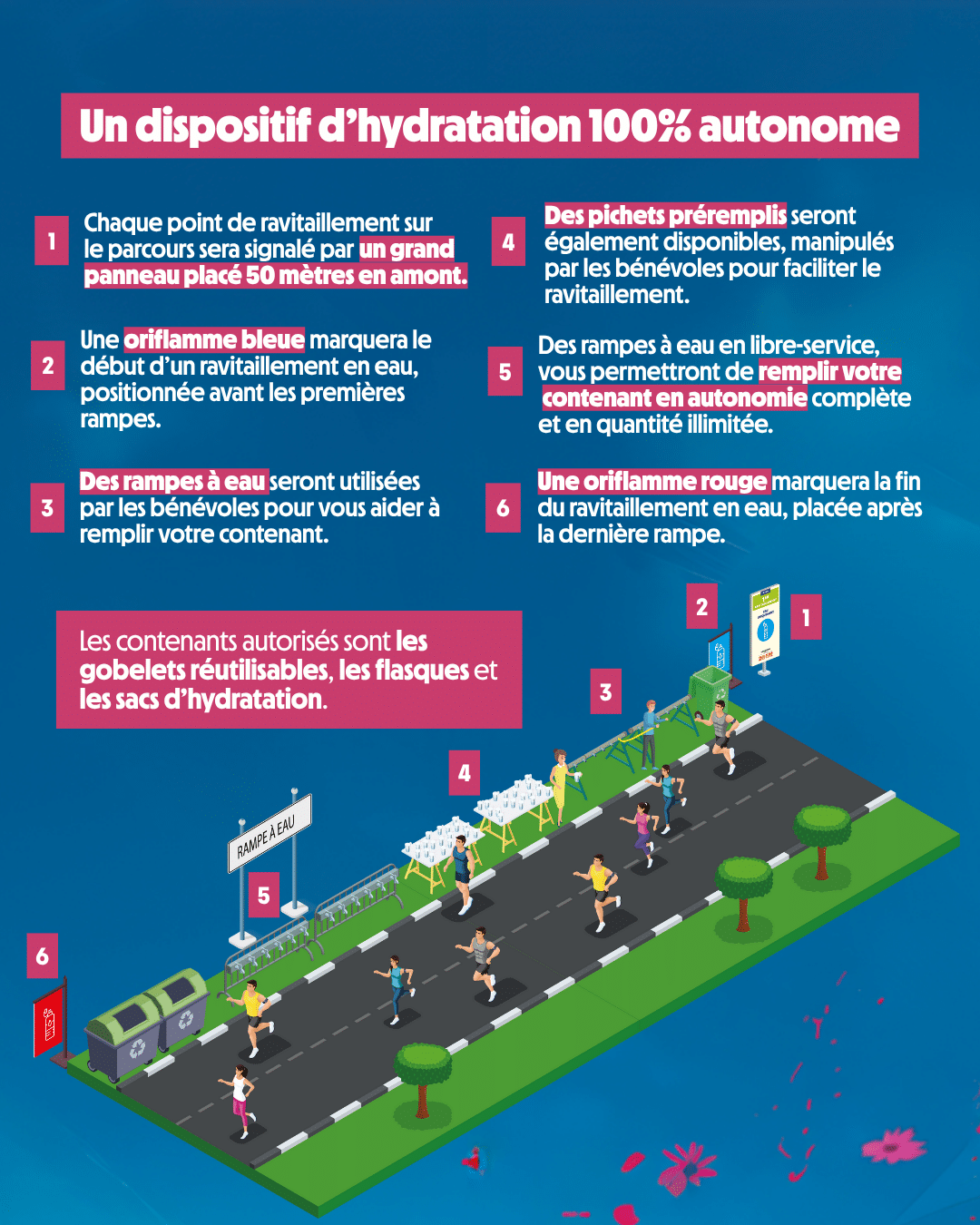 Retrouvez tous les points d’hydratation en libre-service proches du départ et de l’arrivée ici.